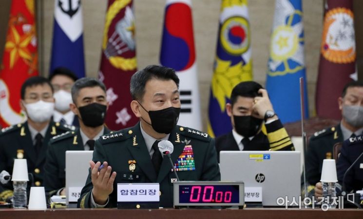 김승겸 합동참모본부 의장이 6일 서울 용산구 합동참모본부 청사에서 열린 합동참모본부 등에 대한 국정감사에 출석, 의원들 질의에 답변하고 있다./국회사진기자단