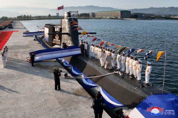 북한은 정권 수립 75주년을 하루 앞둔 이날 수중에서 핵 공격이 가능한 첫 전술핵공격잠수함인 '김군옥영웅함'(제841호)을 건조했다고 밝혔다.