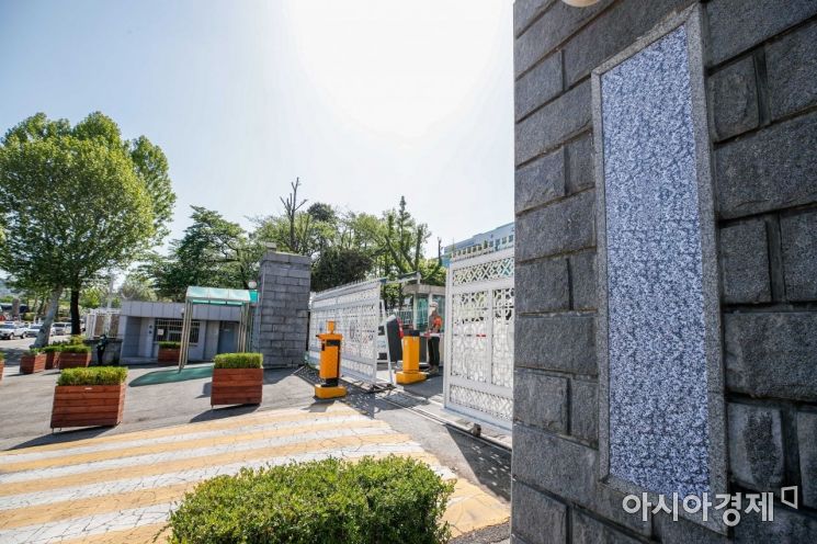 제20대 대통령 취임을 하루 앞둔 9일 대통령 집무실이 들어서는 서울 용산구 국방부 청사 입구에 국방부와 합동참모본부 현판에 제거돼 있다./강진형 기자aymsdream@
