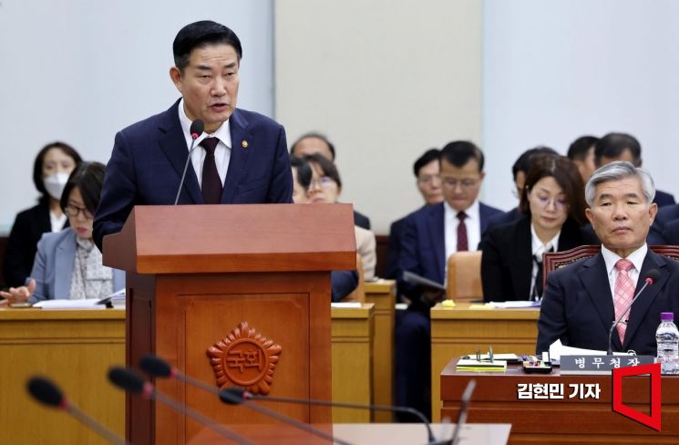 신원식 국방부 장관 후보자가 27일 국회에서 열린 인사청문회에서 모두발언을 하고 있다. 사진=김현민 기자 kimhyun81@